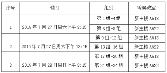 备注:所有考生不论排序先后,统一按照上述所在组的时间安排到校,由志愿者引导参加现场资格审核及面试。